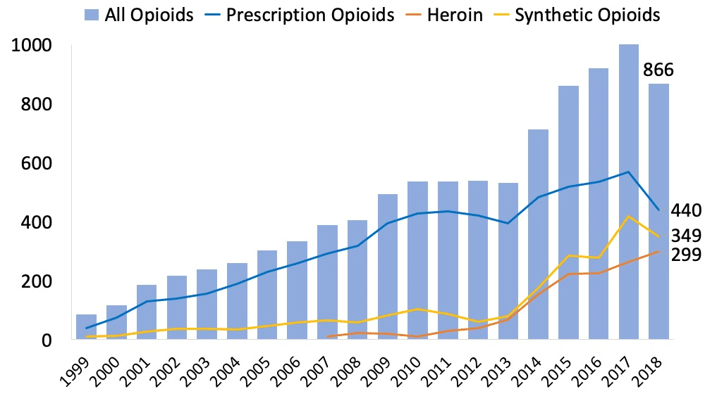 Number of drug and opioid-involved overdose deaths in Georgia – source: https://www.drugabuse.gov/drug-topics/opioids/opioid-summaries-by-state/georgia-opioid-involved-deaths-related-harms